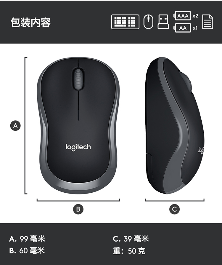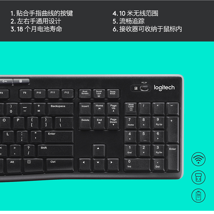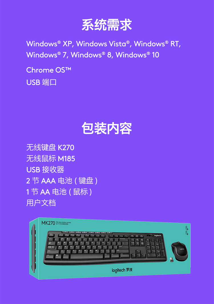 罗技(Logitech)MK270无线键鼠套装黑色 自营